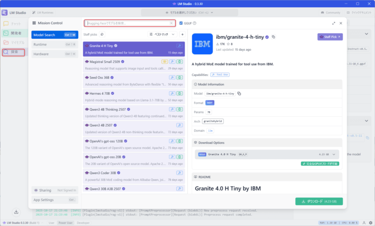 「LM Studio」は、下記のリンクからDL出来ます。無料です。